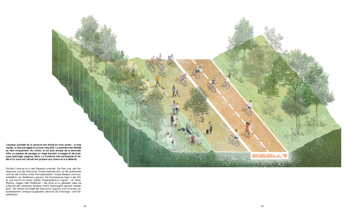 Auf der Suche nach transformativen Potentialen in der Stadt rückte vor allem die Petite Ceinture -eine aufgelassenen Bahntrasse, die sich um Paris legt- in den Fokus. In einer großen Bandbreite an Entwurfsansätzen setzten sich die Studierenden mit den Potentialen dieses Ermöglichungsraumes auseinander, stets mit Hilfe eines starken Narrativs.