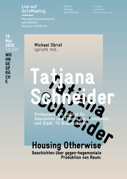 Michael Obrist spricht mit Tatjana Schneider zum Thema "Housing Otherwise - Geschichten über gegen-hegemoniale Produktion von Raum".