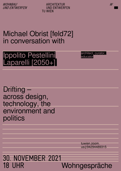 Michael Obrist [feld72] in conversation with Ippolito Pestellini Laparelli [2050+] about "Drifting – across design, technology, the environment and politics"