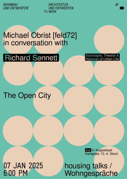 We regret to inform you that the Wohngespräch with Richard Sennett: "'The Open City,'" scheduled for January 7, 2025, will be postponed due to health-related reasons. We sincerely apologize for any inconvenience and will announce the rescheduled date shortly.