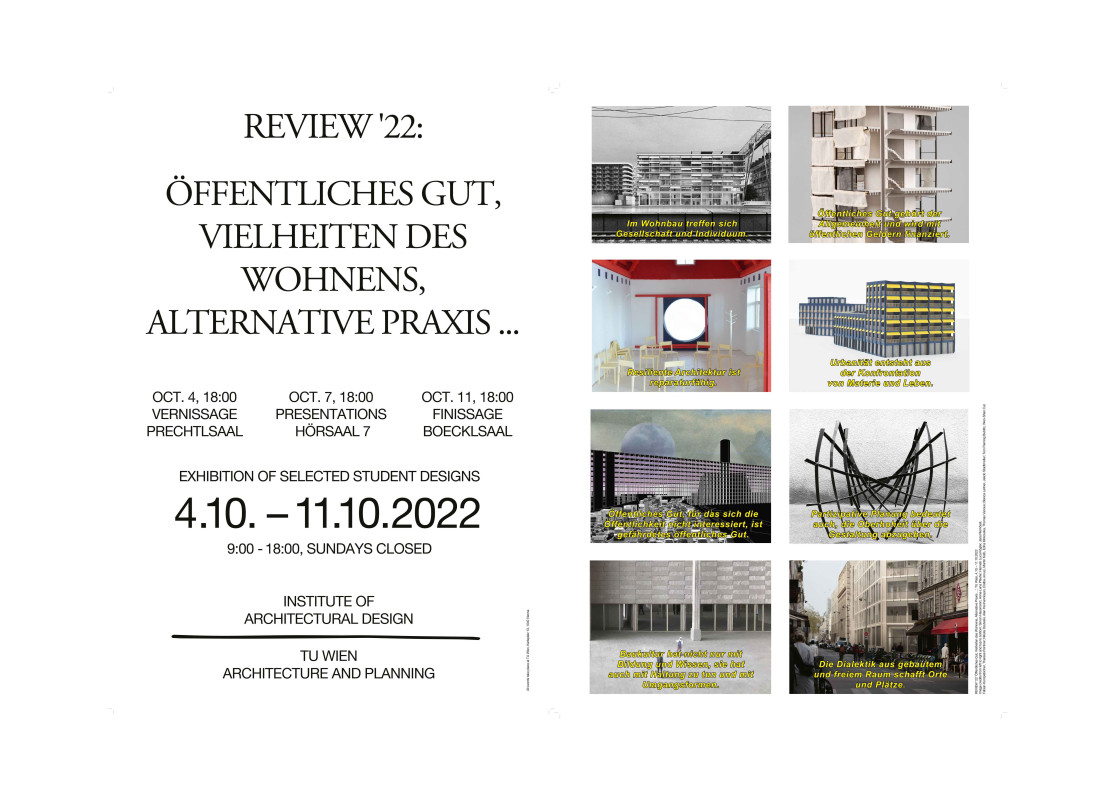 Das Institut für Architektur und Entwerfen der TU Wien kuratiert und veranstaltet die Jahresausstellung "REVIEW". Diese fand nun bereits zum fünften Mal statt und zeigt ausgewählte Studierendenarbeiten, die in den vergangenen zwei Semestern entstanden sind.