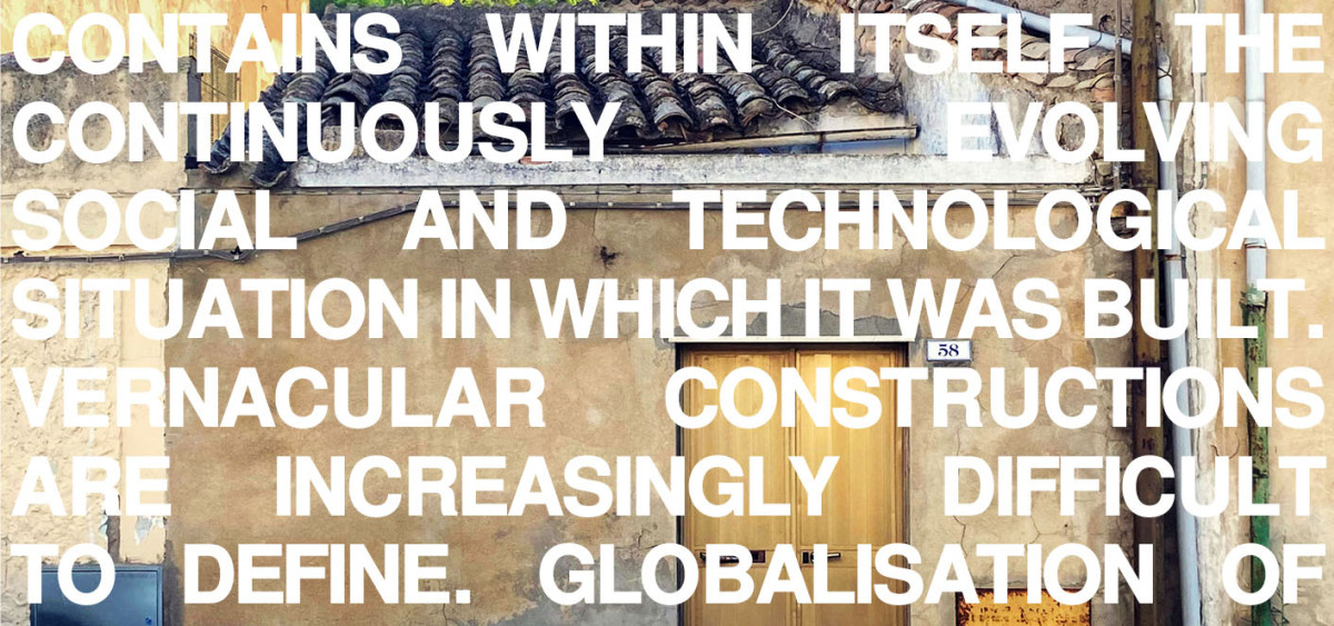 Independent research, analysis and definition of theses on the topic. A critical and multi-layered analysis and statement on vernacular architecture in textual and graphic form is required .